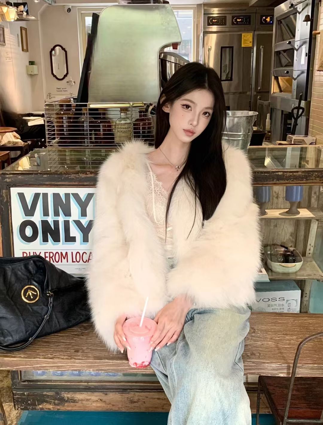 Kelly Designs Pure White Fox Fur V Neck Jacket (instock)