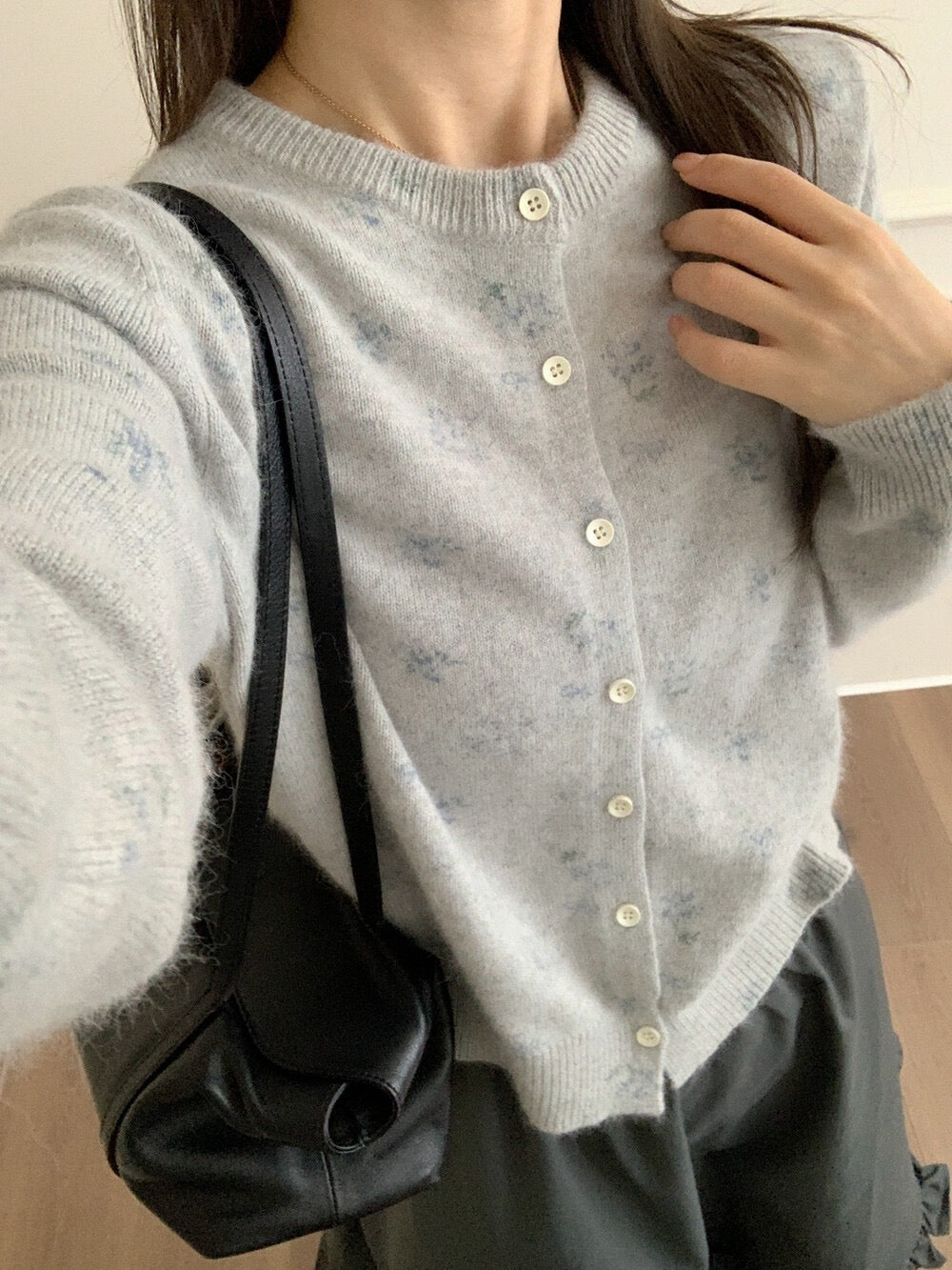 Soft, cozy, and effortlessly romantic — this Raccoon Wool Floral Print Cardigan adds a touch of elegance to your fall and winter wardrobe.