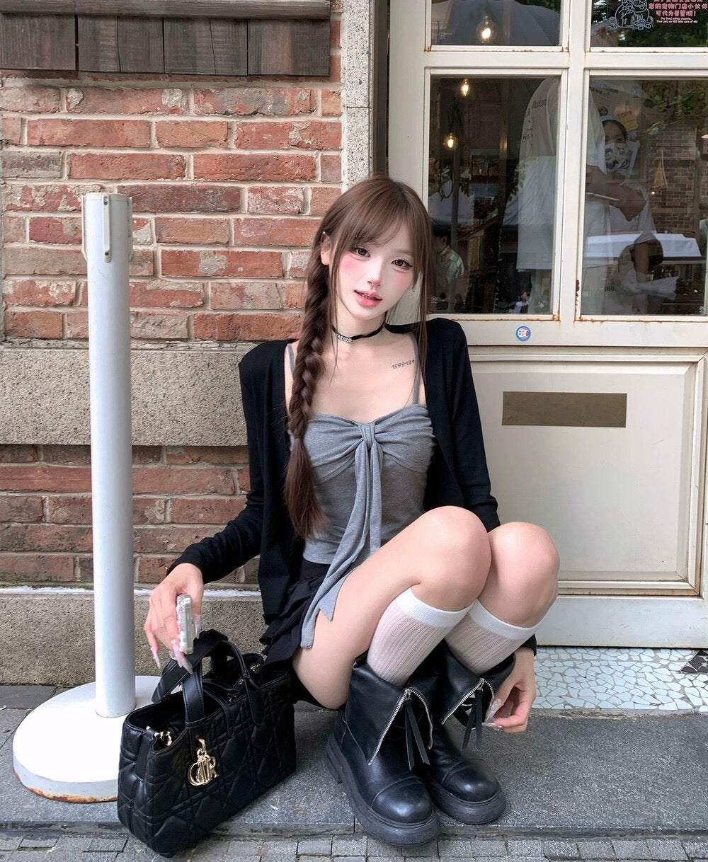 Paired with a lightweight matching cardigan, this set creates a flattering layered look while remaining versatile for everyday styling. Wear the tank alone for a clean, sexy silhouette or layer it with the cardigan for a soft, chic vibe.