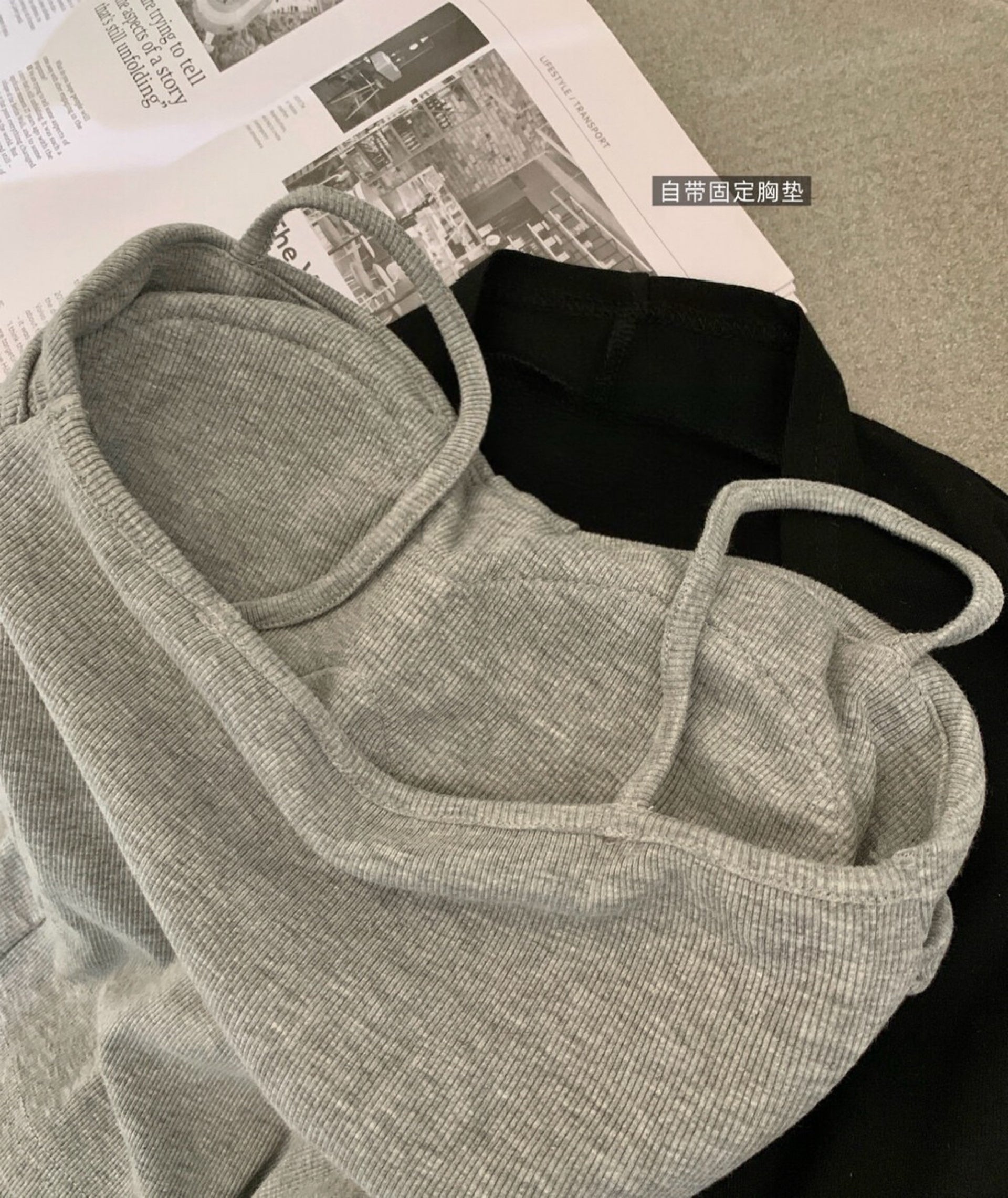 This ribbed tank top features a feminine bow-front detail and comes with a built-in padded bra, offering secure support without the need for additional undergarments.