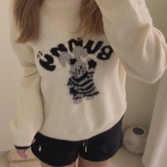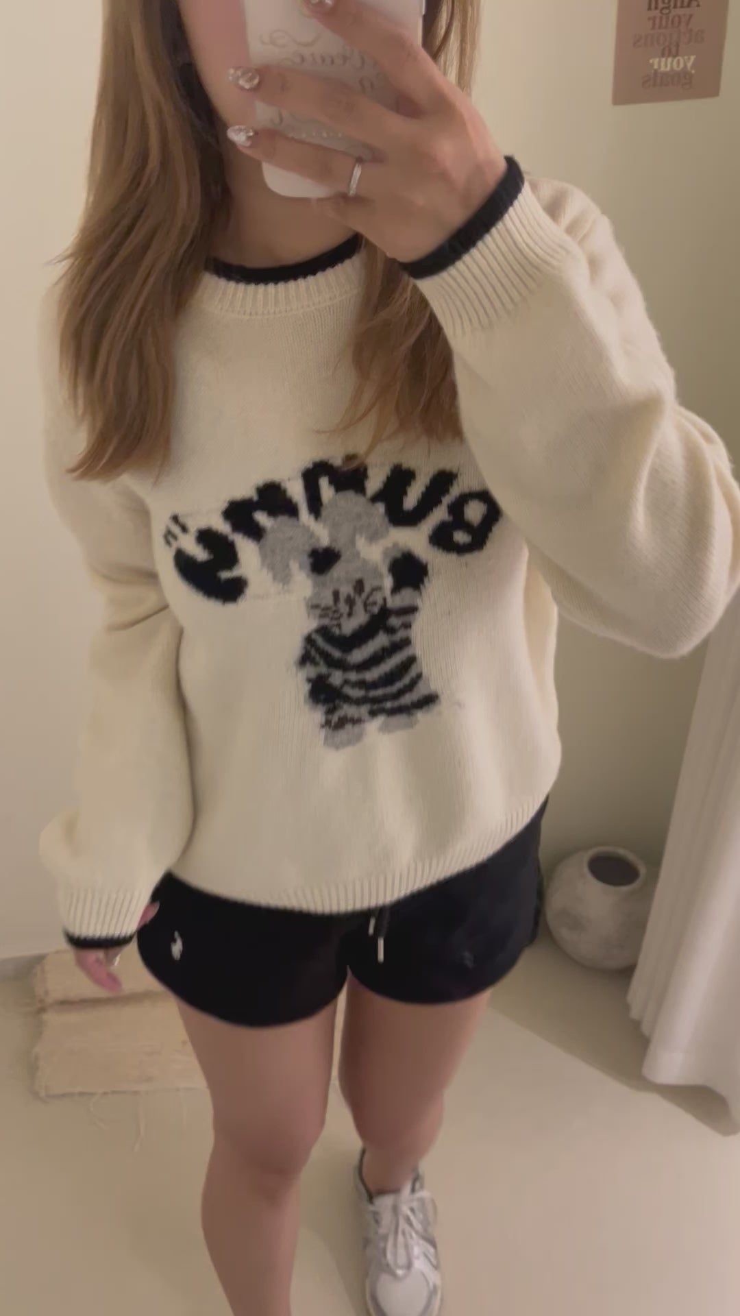 Kelly Designs Black Bunny White Sweatshirt (Instock)