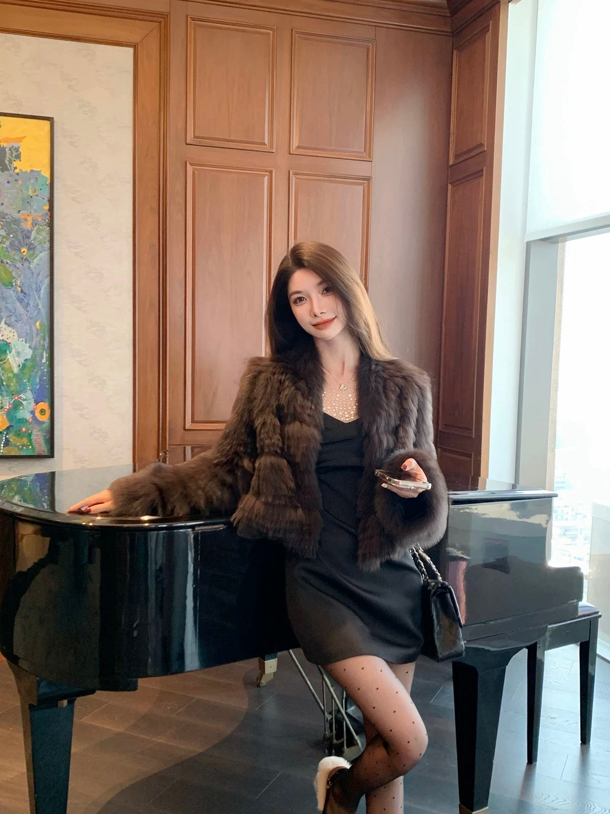 Kelly Designs Brown Fox Fur Coat with Panel Stitch Design(Instock)