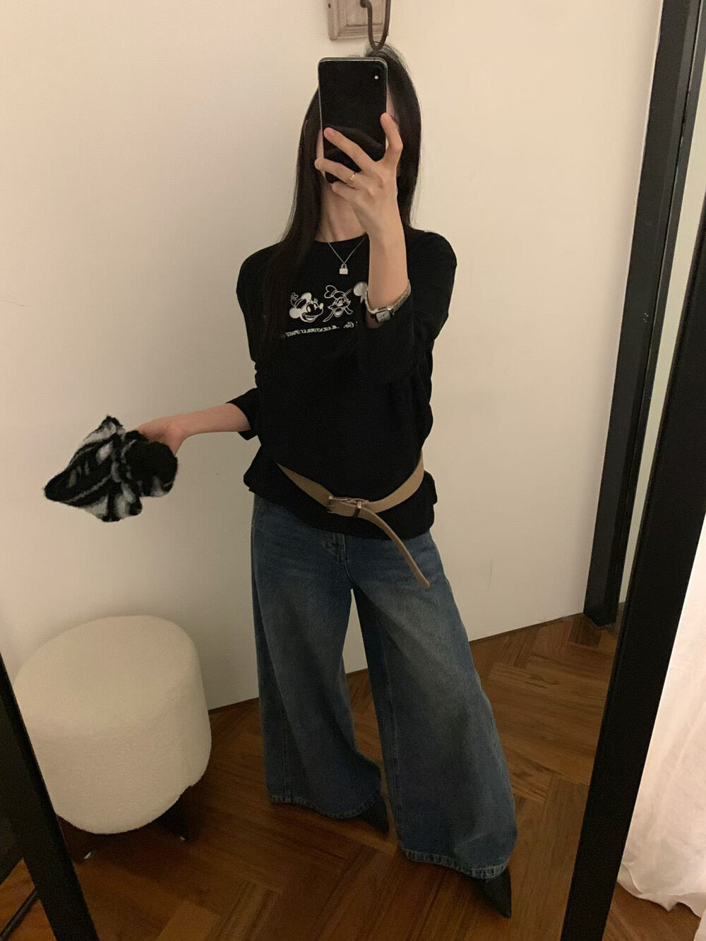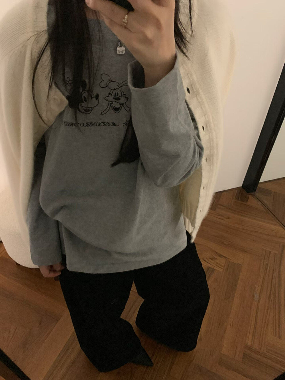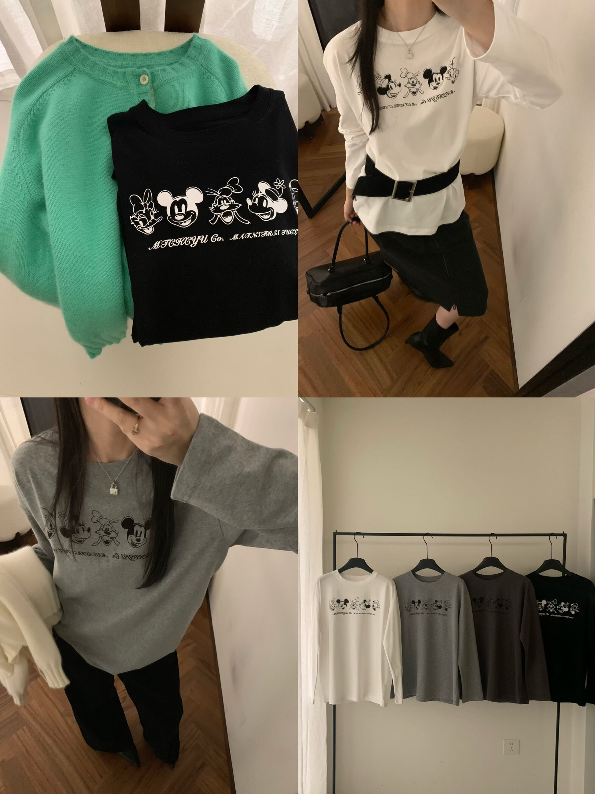 A soft, comfy long-sleeve tee featuring a playful Mickey & Friends line-art graphic. Made with breathable cotton fabric and designed in a relaxed Korean fit, it’s easy to style for everyday casual outfits.