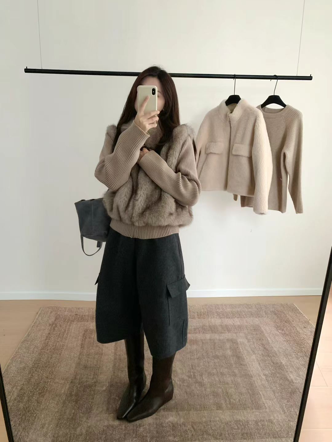 The short silhouette enhances body proportions, while the rich faux-fur texture adds a luxurious Korean-style winter vibe.