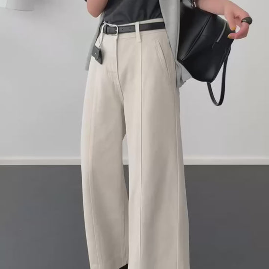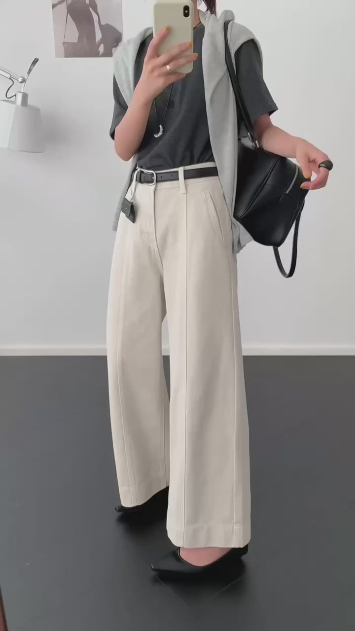 The 9/10 cropped length elongates the legs, making them ideal for shorter frames. Finished with a matching belt for an effortlessly polished Korean-style look — perfect for everyday wear this fall.