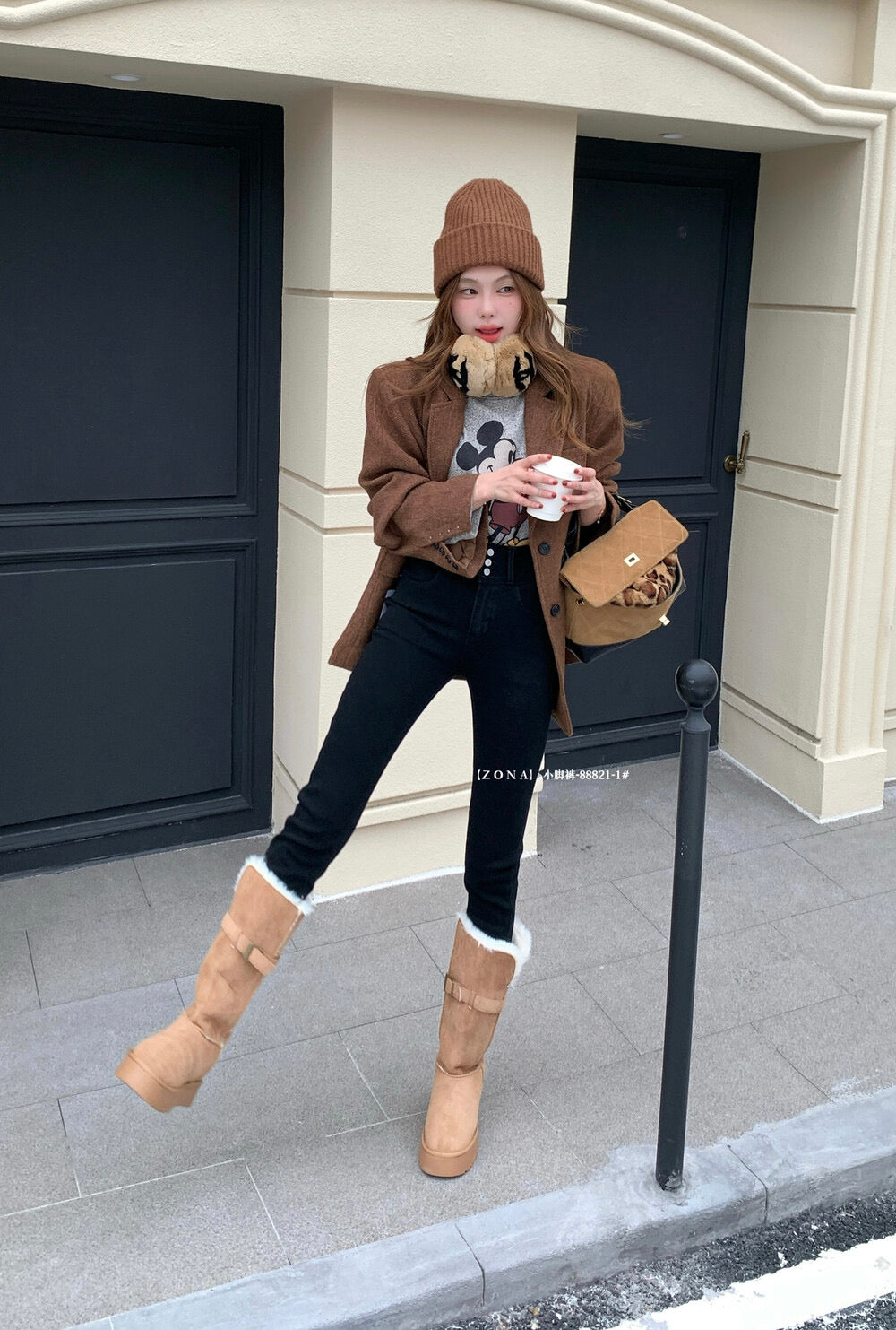 - Features: Warm, soft inner fleece, comfortable stretch, Korean casual look