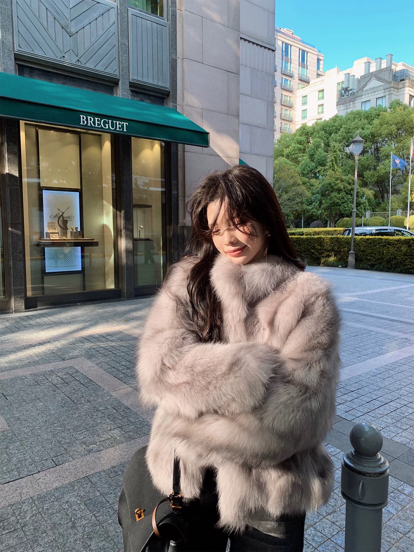 Kelly Designs Fox Fur Grey Purple Jacket (Instock)