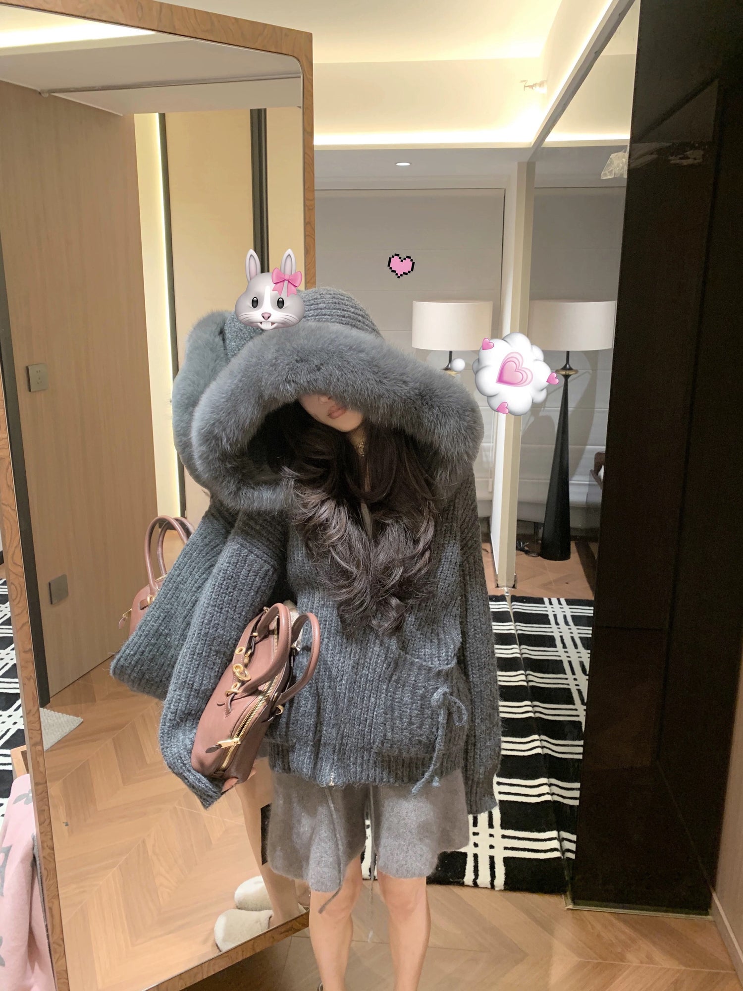 Kelly Designs Fox Fur Grey Zip Up Ribbons Hoodie (Instock)
