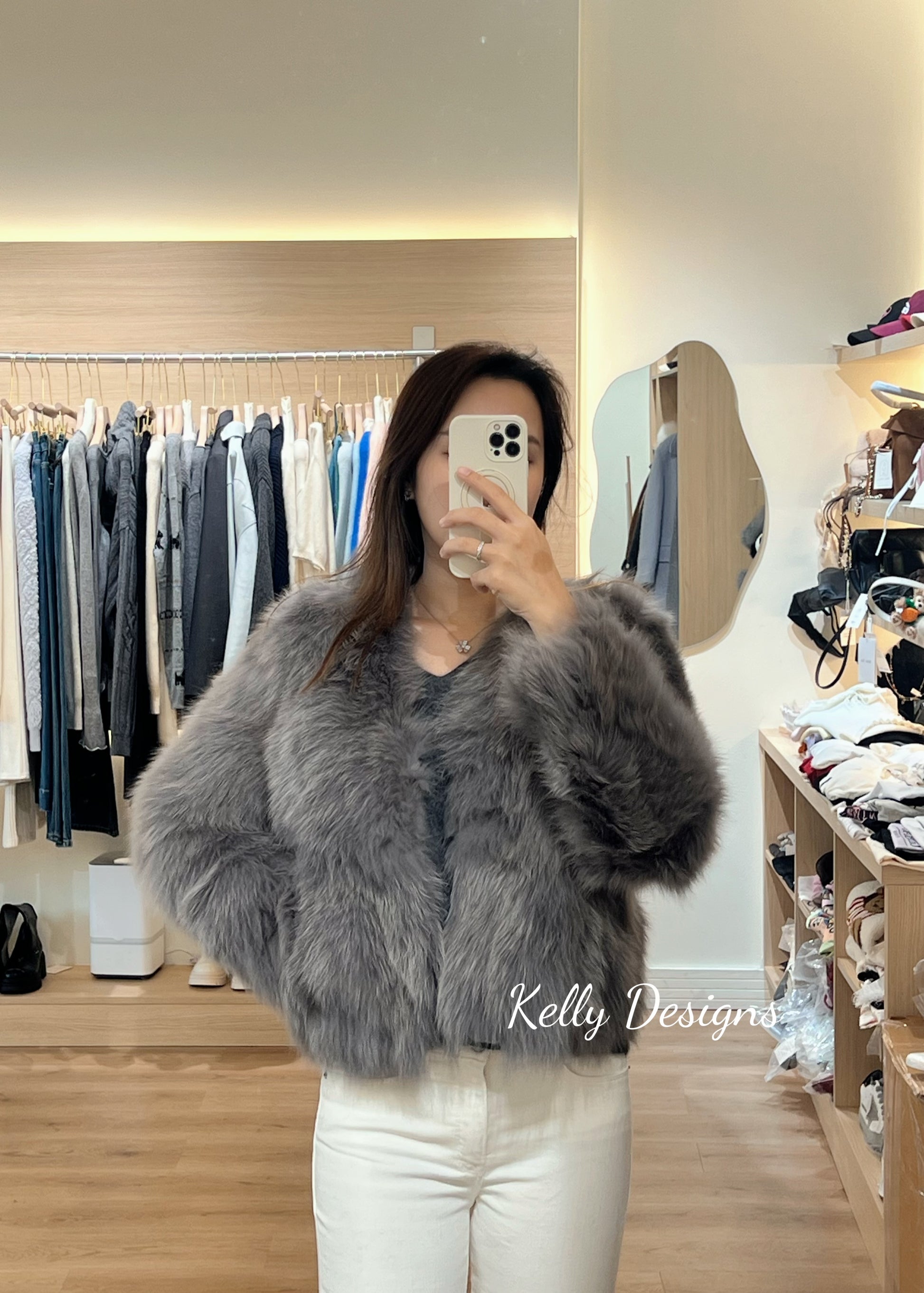 Kelly Designs Fox Fur Mystery Grey Jacket (Instock)