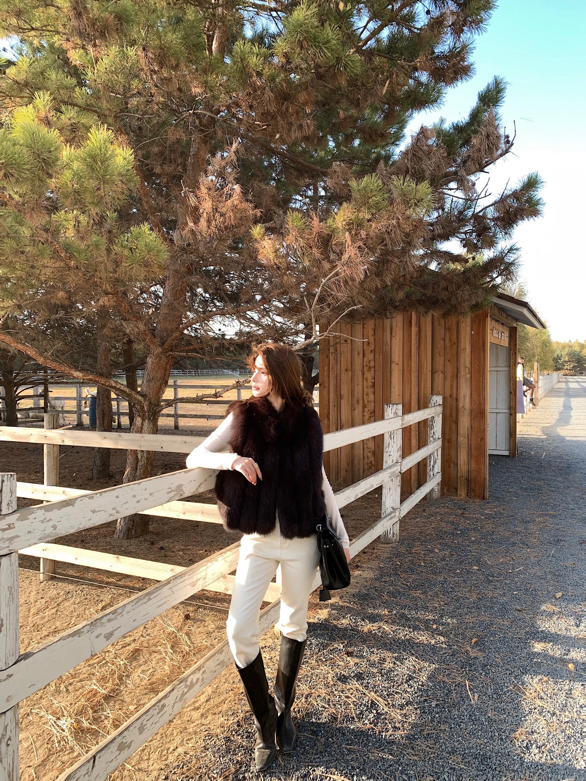 Kelly Designs Fox Fur Vest Dark Brown Jacket (Instock)