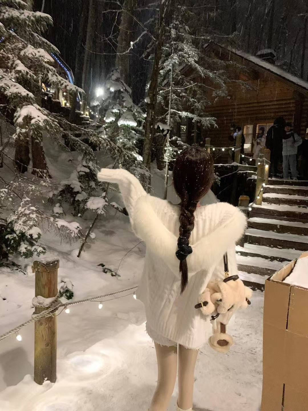 Kelly Designs Fox Fur White Mid Length Cardigan (Instock)