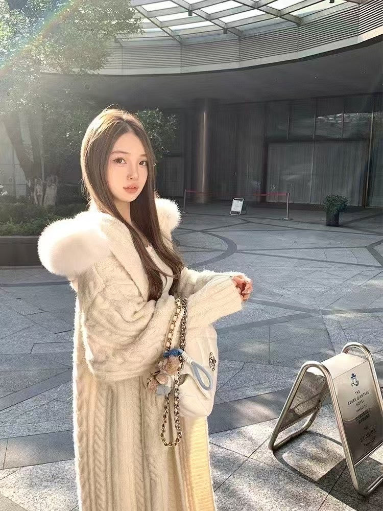 Kelly Designs Fox Fur White Long Length Cardigan(Instock)