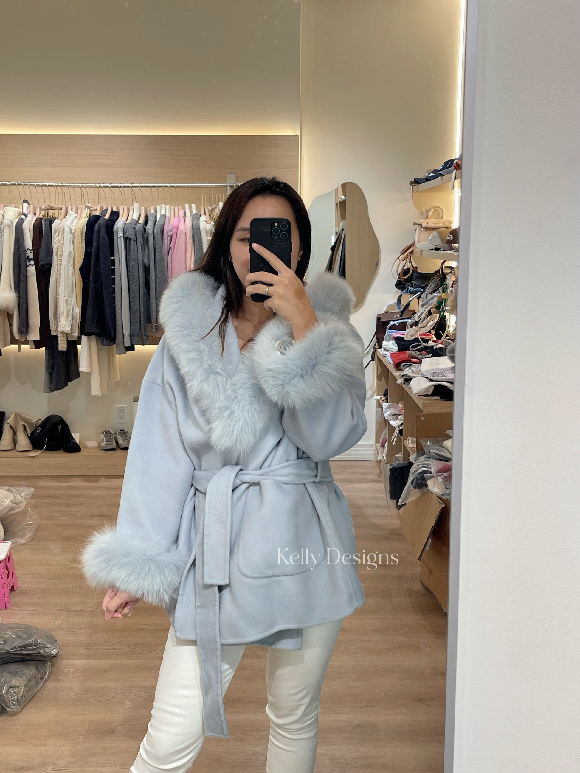 Kelly Designs Fox Fur Wool Blue Coat (Instock)