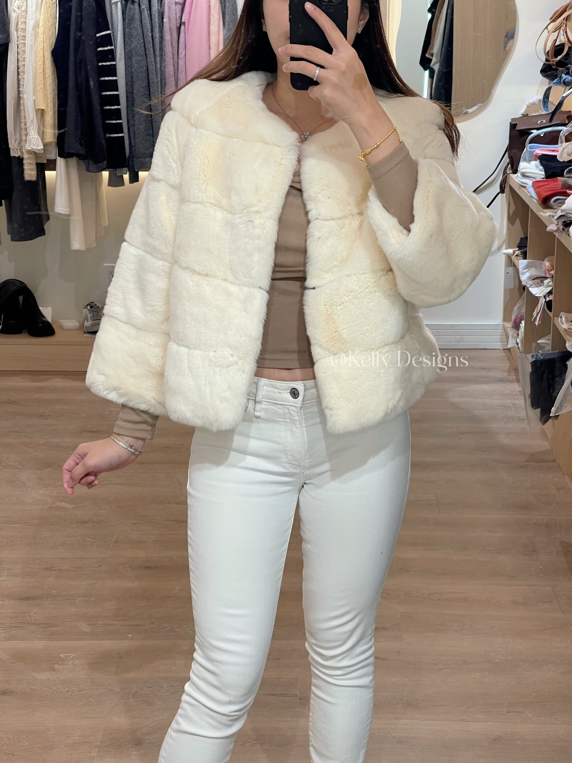 Kelly Designs Imported Rex Rabbit Fur Jacket – Ivory White | New Year Rabbit (Instock)
