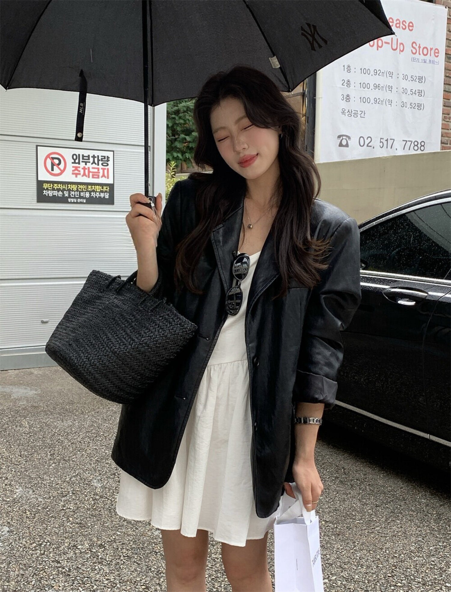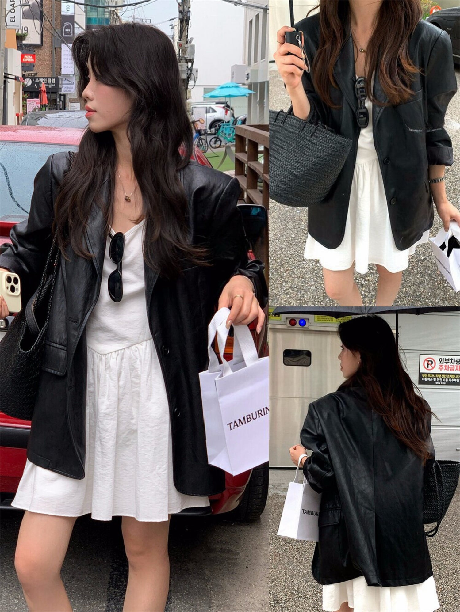 Kelly Designs Blazer-Collar Faux Leather Jacket (Instock)