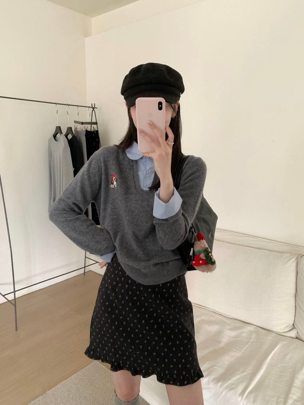 Playful yet refined — this Korean Preppy Puppy Embroidery Layered Sweater combines the charm of a shirt-collar knit with the warmth of 100% wool.