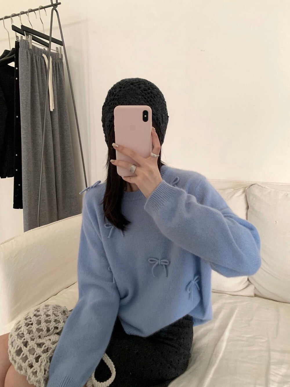 Soft, elegant, and irresistibly cozy — this Raccoon Wool Bow Knit Pullover captures the essence of Korean chic.