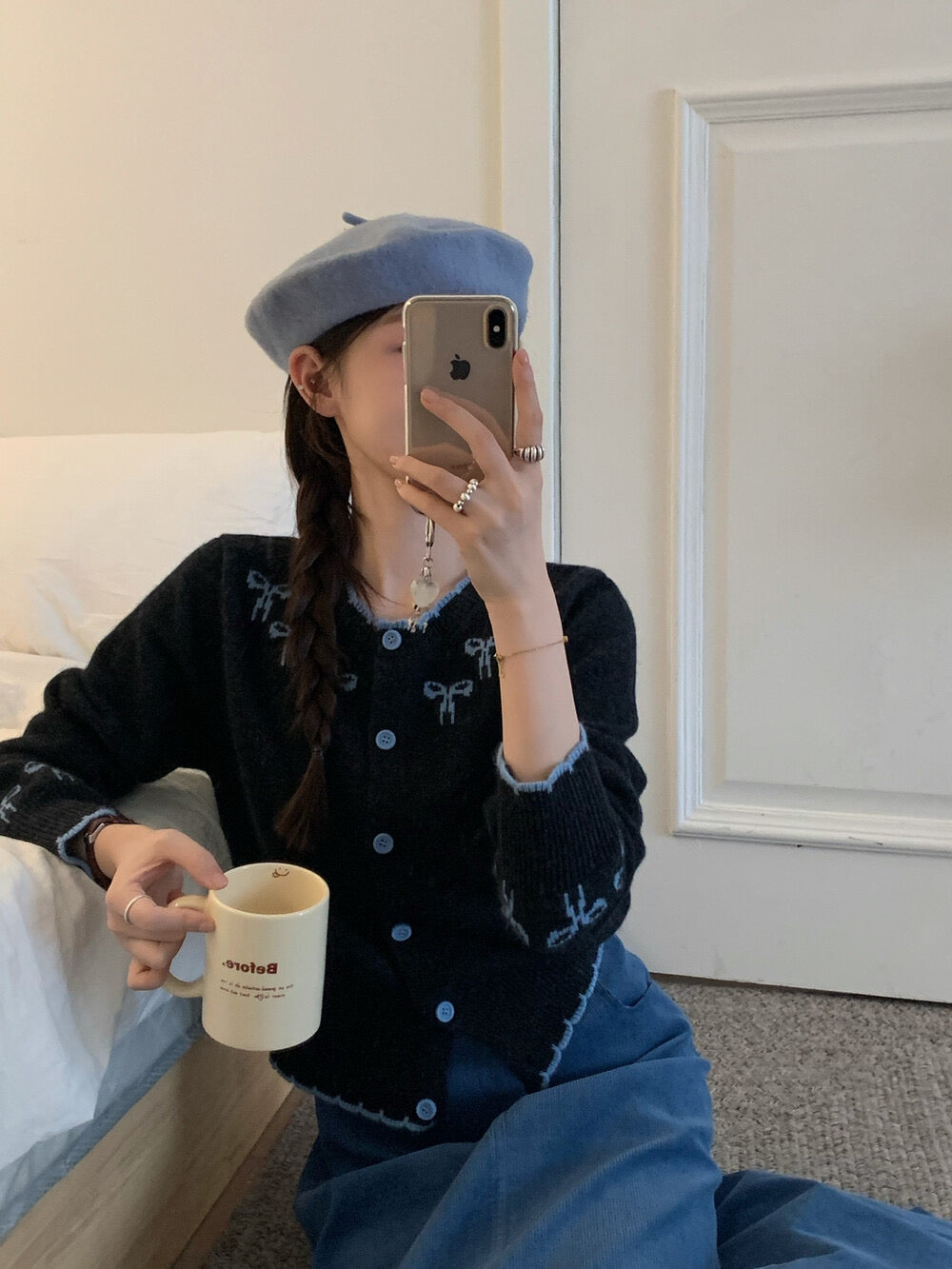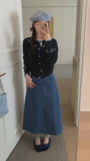 Kelly Designs Ribbons Navy Wool Cardigan (Instock)