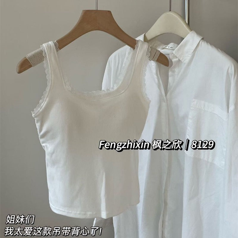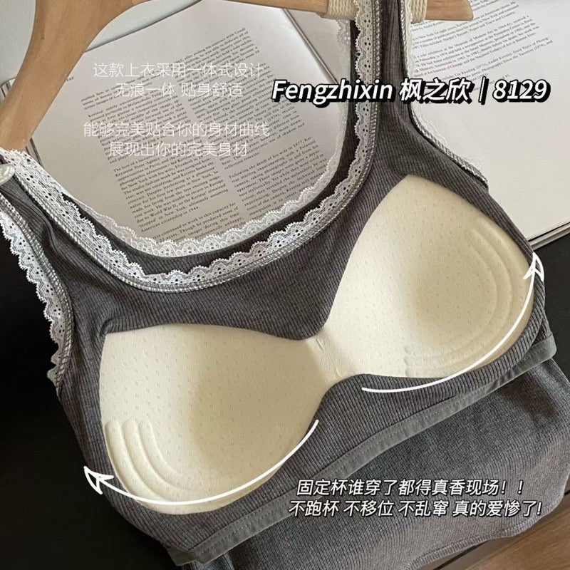 Kelly Designs Soft Ribbed Lace Tank with Built-In Bra Top (Instock)