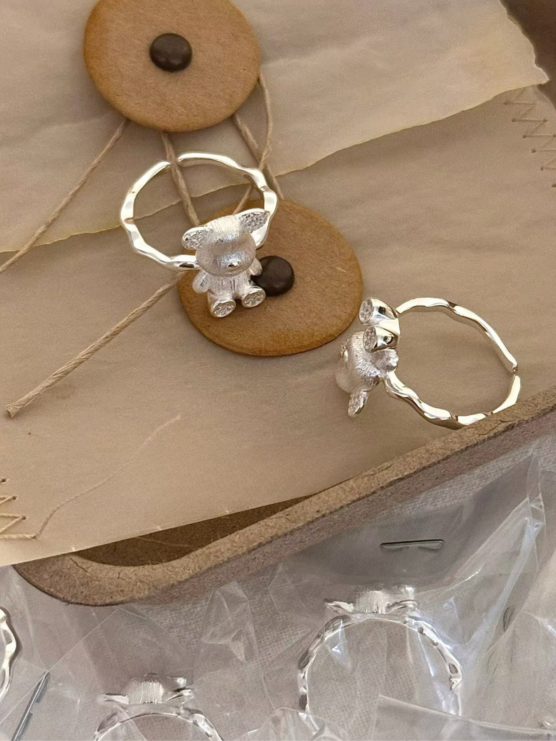 Kelly Designs Sterling Silver Teddy Bear Ring – Hammered Band(Instock)