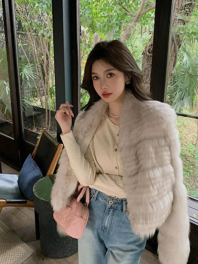 Kelly Designs White Fox Fur Coat with Panel Stitch Design- V Neck(Instock)