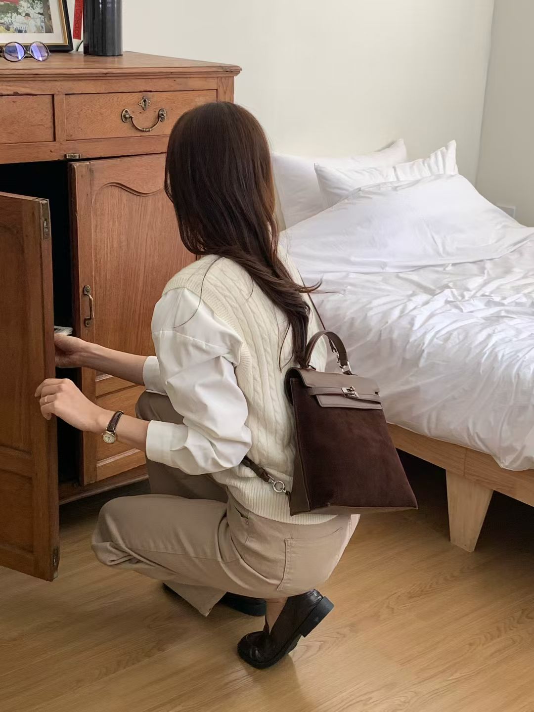 Korean APM Collection Three Ways Shearling Cow Leather Bag (Instock)