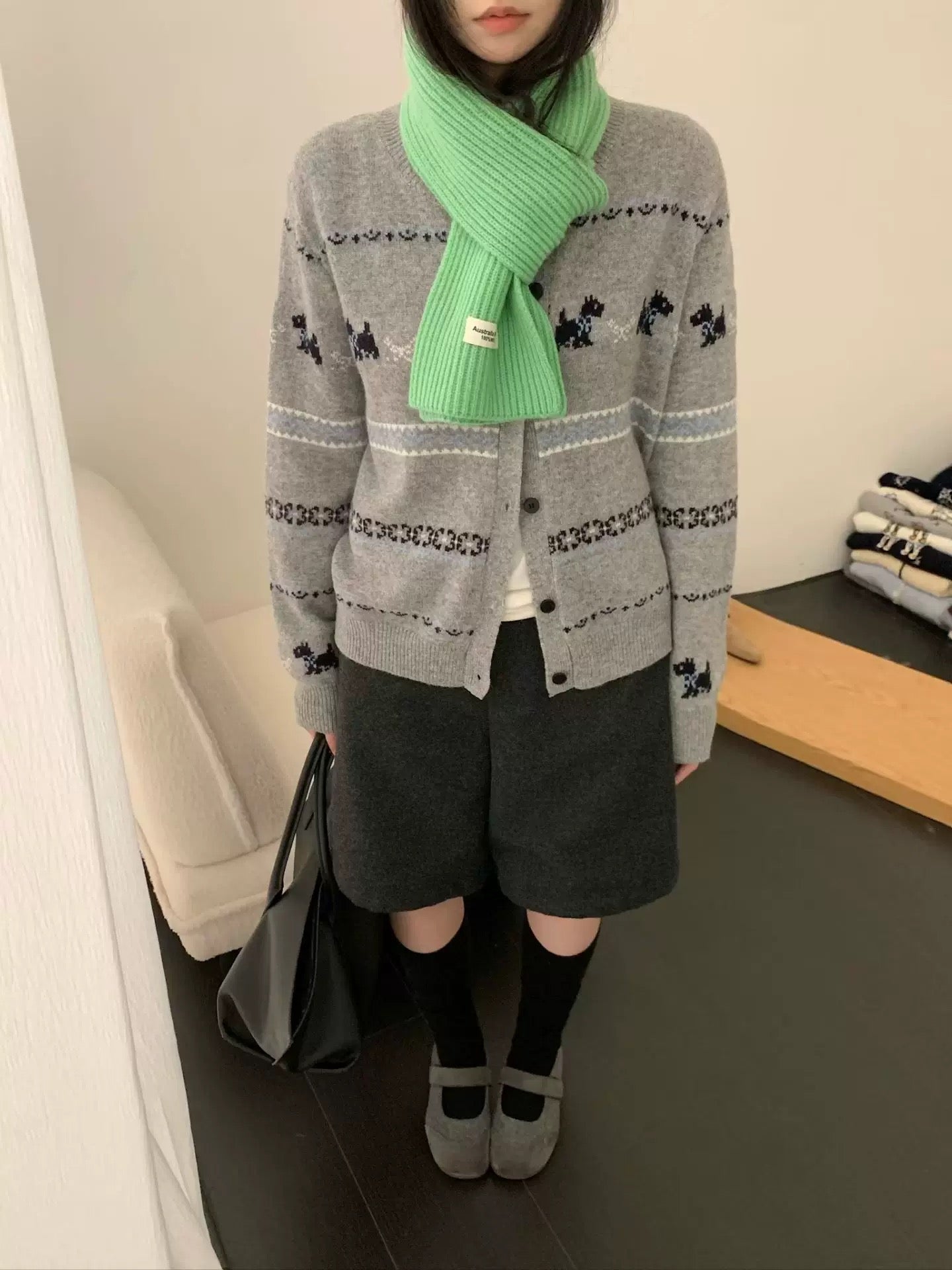 Kelly Designs Wool Puppy Pattern Knit Cardigan (Instock)