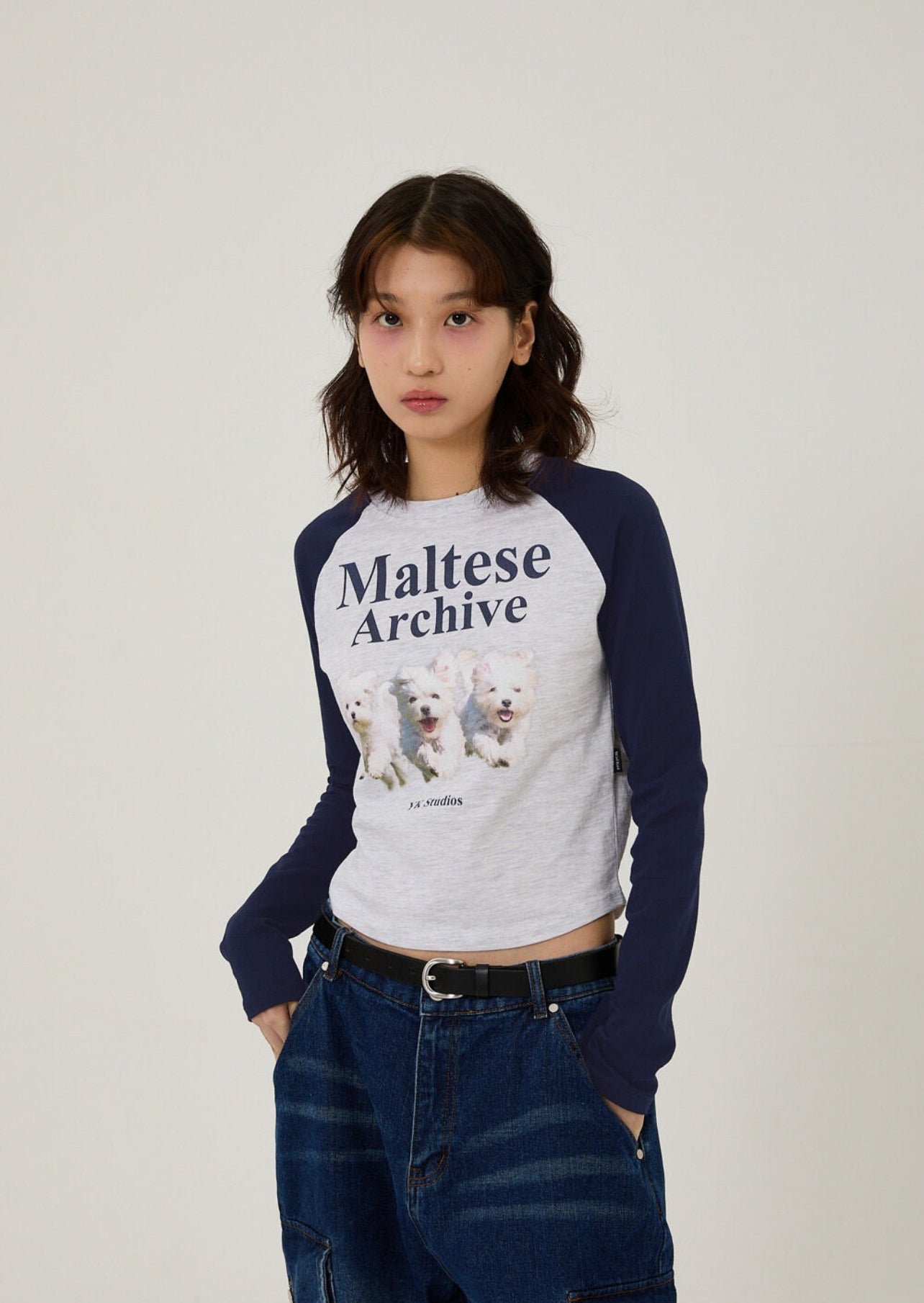 Waikei Maltese archive raglan long sleeve tshirts MELANGE WHITE (Preorder)